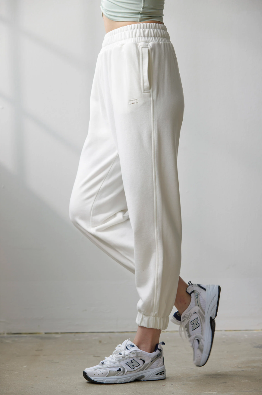 Jogginghose mit hoher Taille und Hosentaschen. Gummizug an der Taille und am Beinende. Logo auf der linken Seite eingenäht.