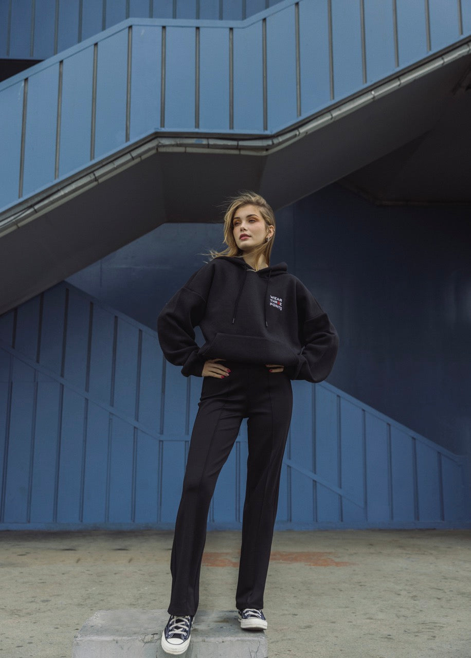 Gerade geschnittene Hose mit gerippten Nähten aus bequemem elastischem Stoff.